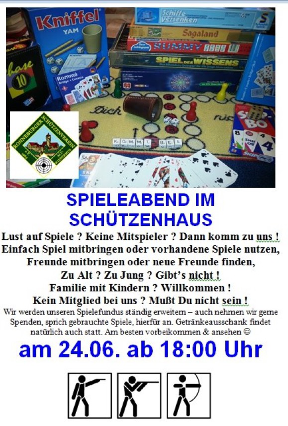 Am 24. Juni findet wieder unser Spieleabend statt!